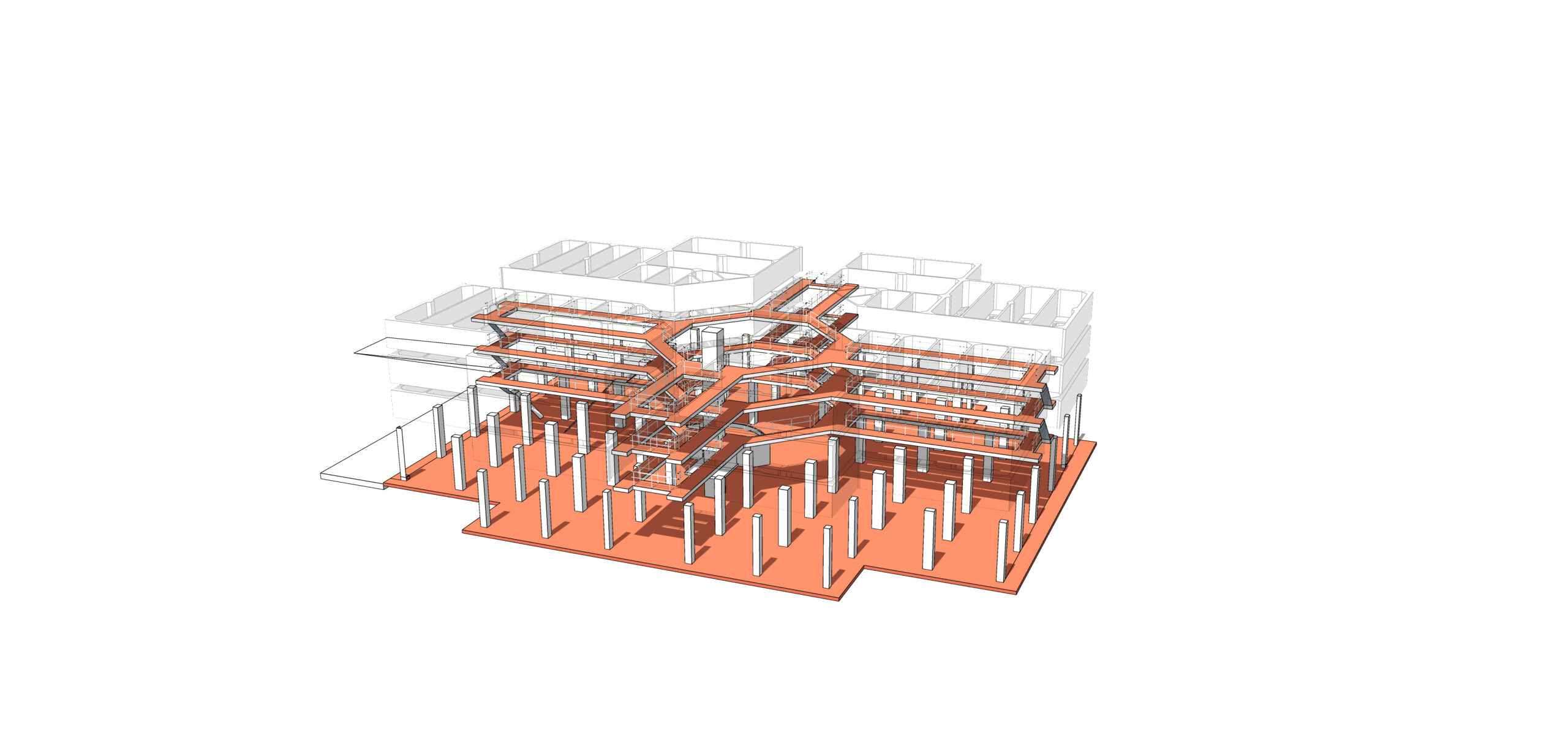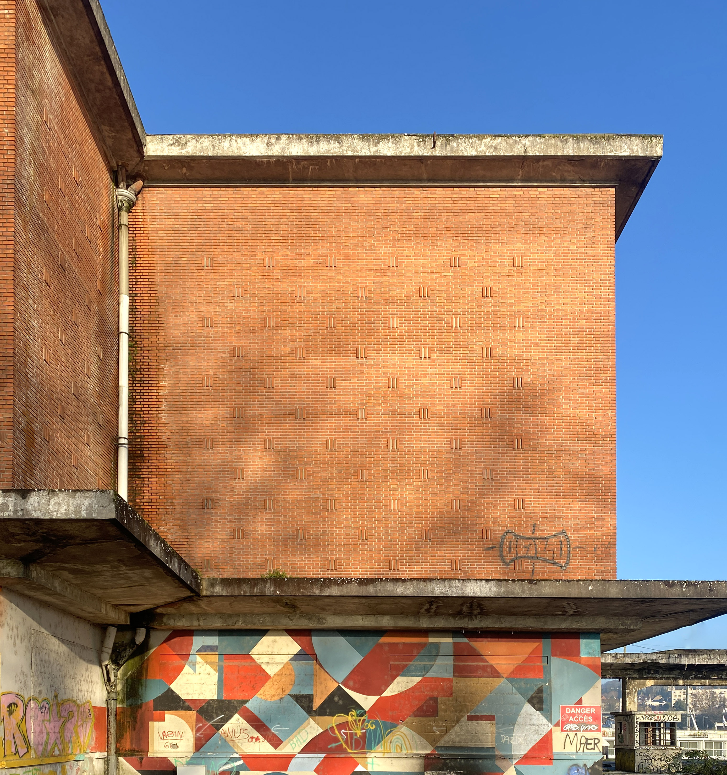 La Métropole de Rouen nous a confié une étude de programmation fonctionnelle visant à interroger les possibilités de réappropriation du site par la ville. Inscrit dans la mémoire collective des Rouennais comme un lieu de fêtes clandestines et de musiques contemporaines, le bâtiment souffre d’un vandalisme récurrent. Les équipements industriels d’origine, les réseaux, les gardes-corps et, plus largement, tous les éléments dotés d’une valeur de revente, sont régulièrement dérobés. Le site a également fait l’objet d’interventions artistiques, notamment un vaste graffiti géométrique couvrant une grande partie du rez-de-chaussée côté sud.