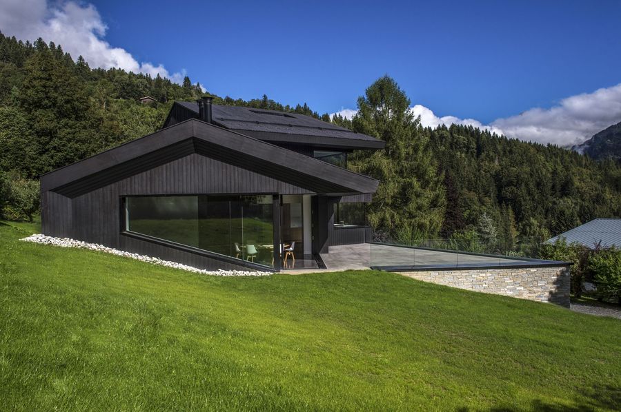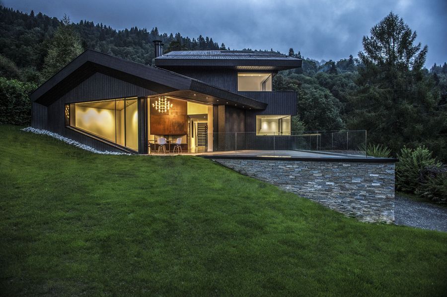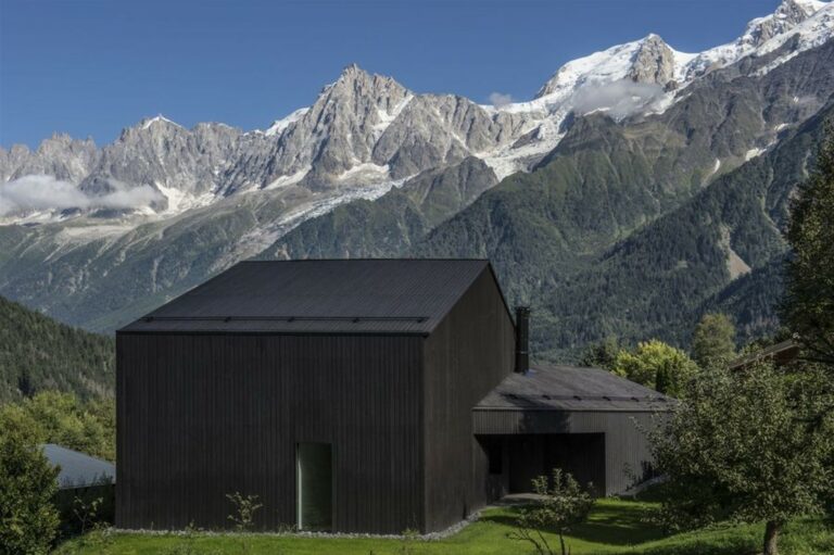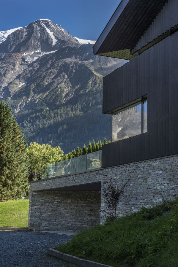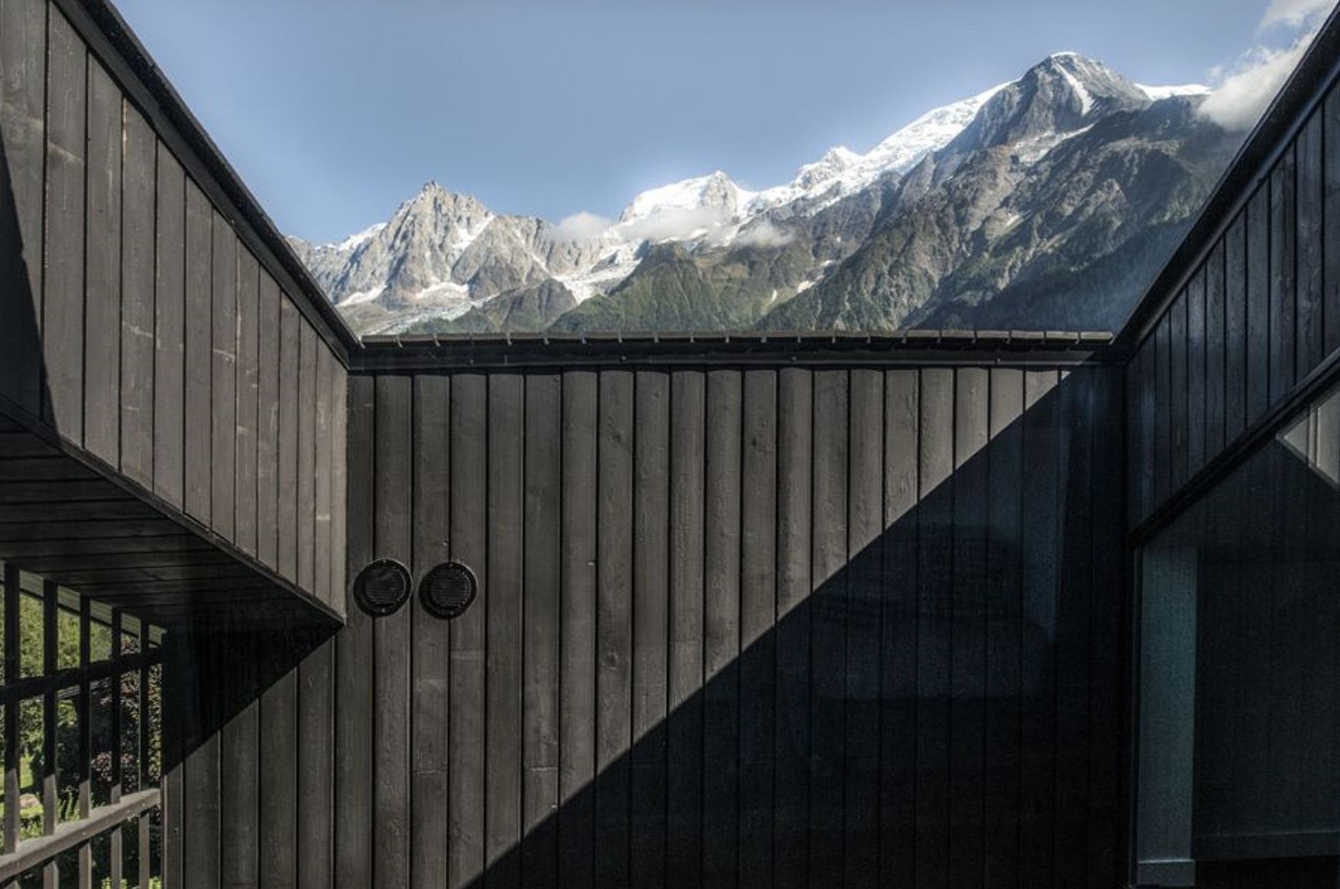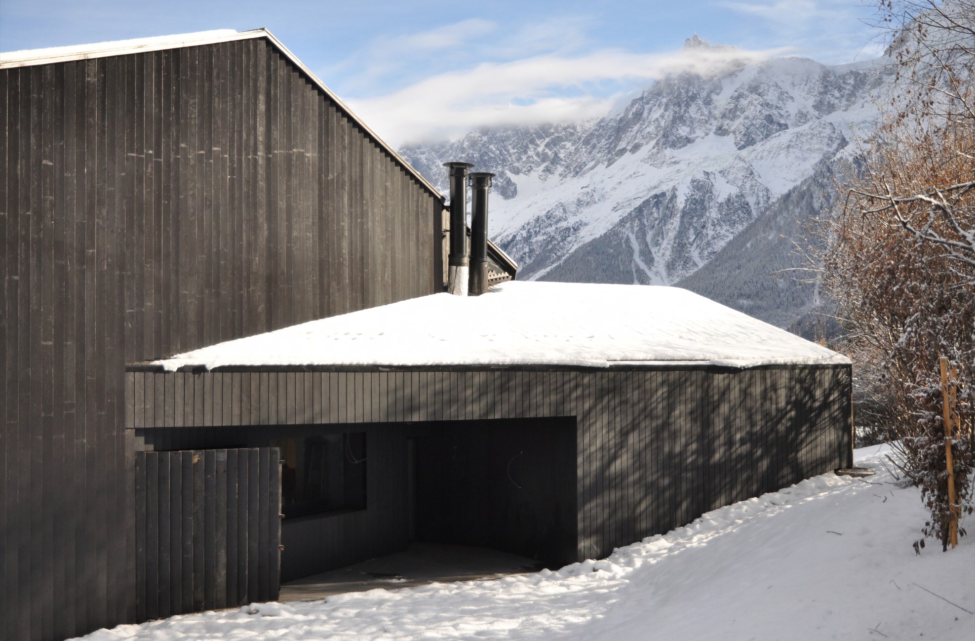 À la suite de la demande de clients historiques de l’agence, nous avons réalisé la construction d’un chalet contemporain dans la vallée de Chamonix. Le site se situe sur une parcelle au sein d’un lotissement des années 1950, encore occupée par un chalet d’origine. Celui-ci bénéficie d’une vue exceptionnelle sur la chaîne des crêtes du Mont-Blanc, un panorama majestueux qui constitue le point de départ du projet.