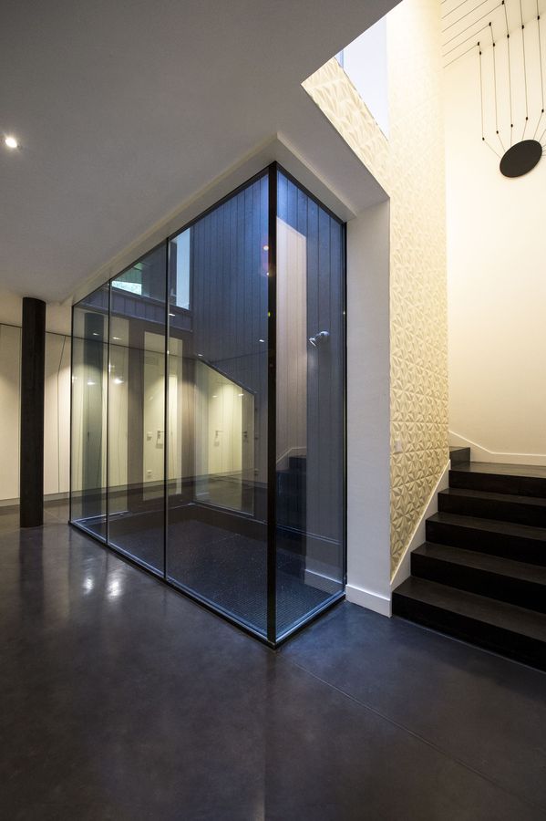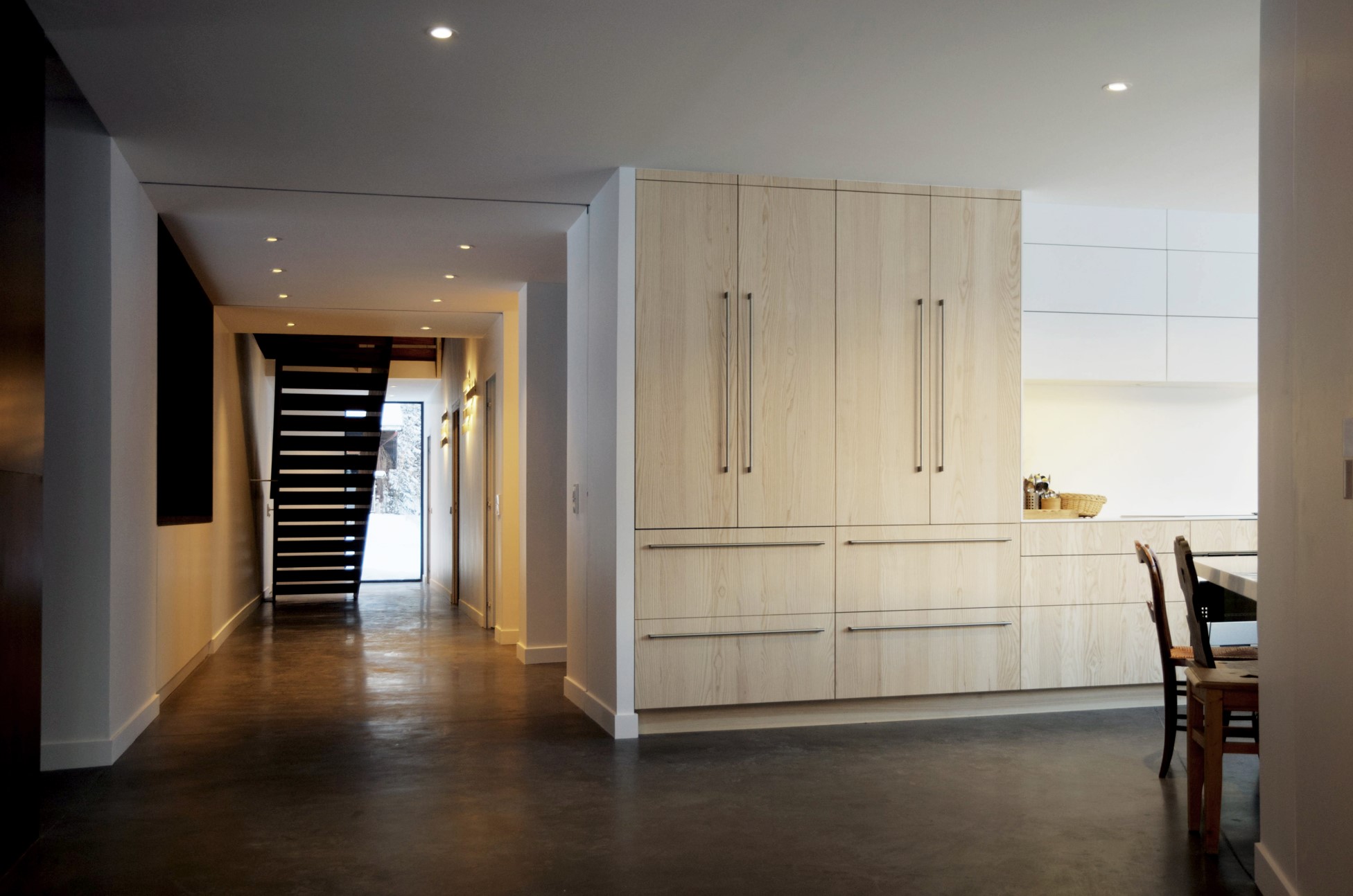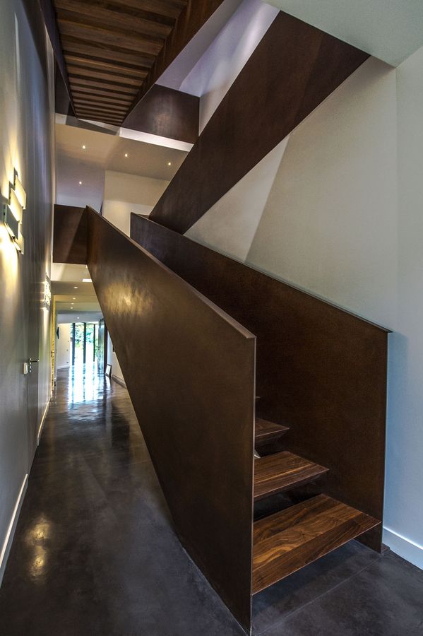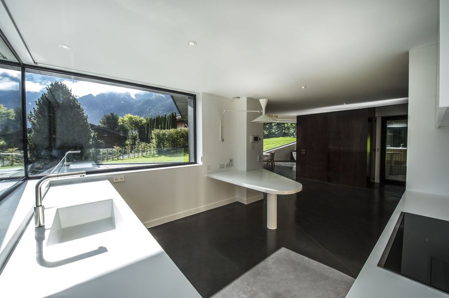 Le projet s’implante dans le terrain naturel en conservant un soubassement minéral surmonté d’une superstructure en bois. Le soubassement accueille les locaux techniques et le garage. L’ensemble de l’opération a été mené sur un chantier de 9 mois.