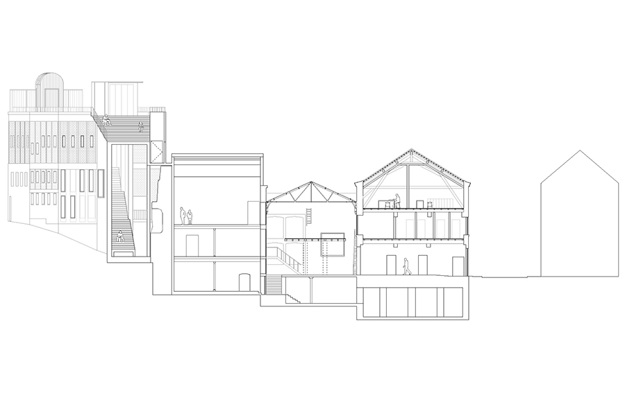 Le projet de reconversion d’une partie des anciens établissements Dessaux prévoit la réutilisation d’un ensemble de bâtiments hétérogènes, tant par leur période de construction que par leur morphologie ou leur usage d’origine. Les anciennes vinaigreries Dessaux composaient un ensemble bâti aujourd’hui partiellement reconverti ou démoli, dont l’étendue initiale était bien supérieure à celle des bâtiments conservés et destinés à accueillir le futur centre d’art.