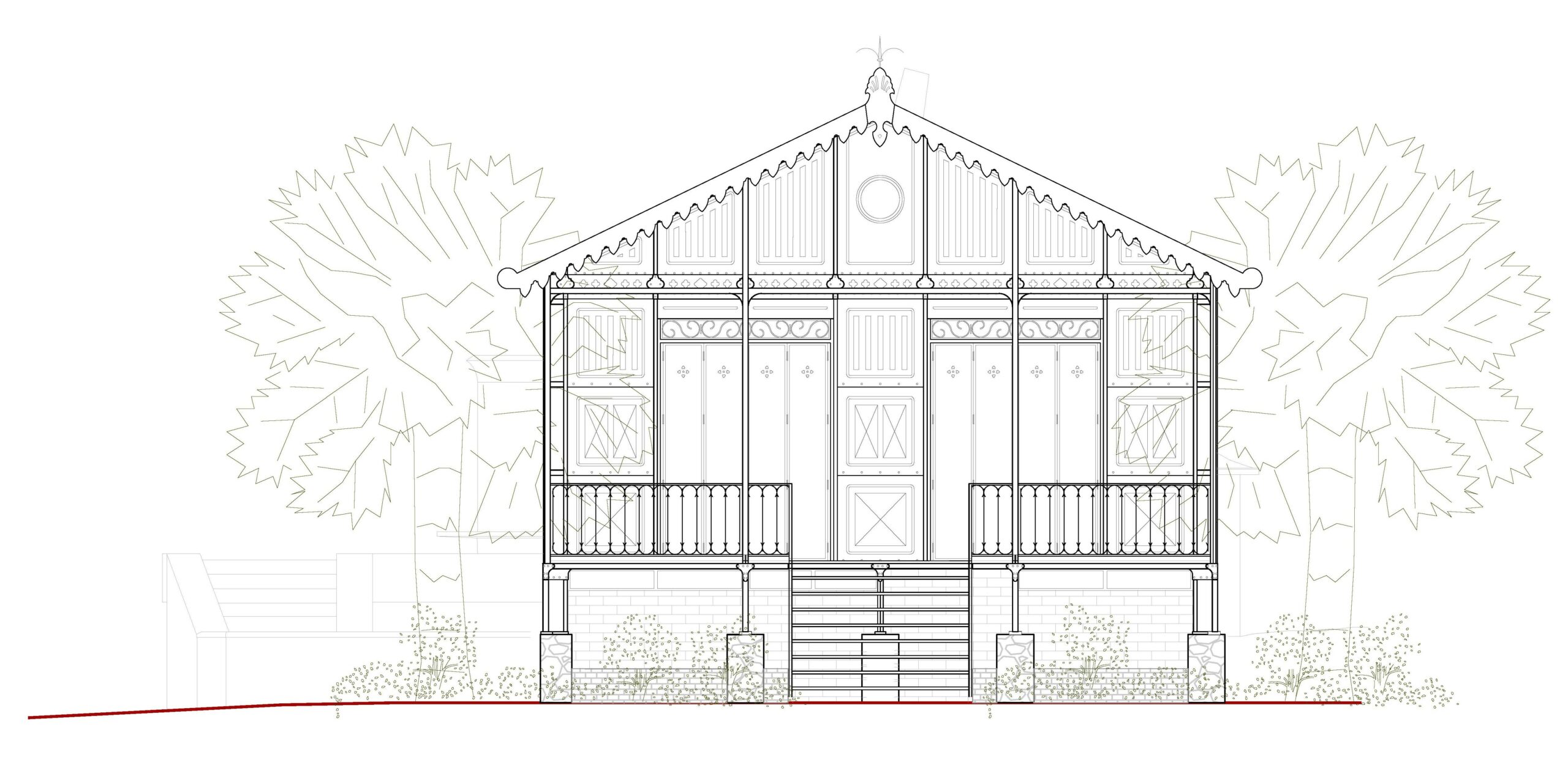 Aujourd’hui, cette maison présente des pathologies, et des traces de corrosion sont visibles sur l’ensemble des tôles de vêture. Une campagne de travaux s’impose, impliquant la dépose complète des panneaux de façade et le traitement sur site de l’ensemble des parties métalliques.
