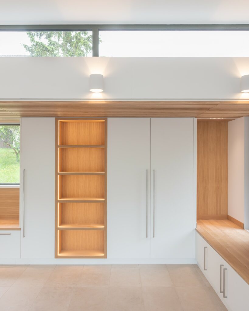 La maison présente plusieurs spécificités liées à la personnalité et à la profession du client. Elle intègre notamment un bar à vin et un lieu de dégustation. Le projet met en valeur les artisans et les matériaux locaux. Un travail soigné autour de la pierre de taille et de la serrurerie sur mesure a été mené de manière approfondie, la mission intégrant également l’aménagement intérieur.