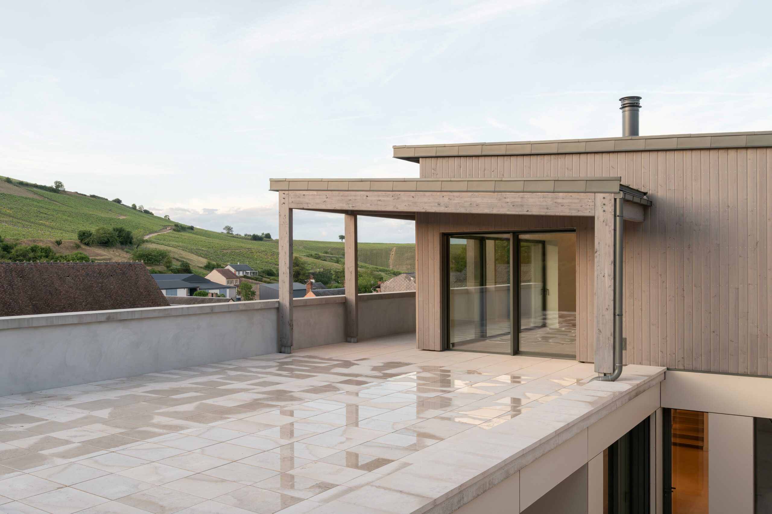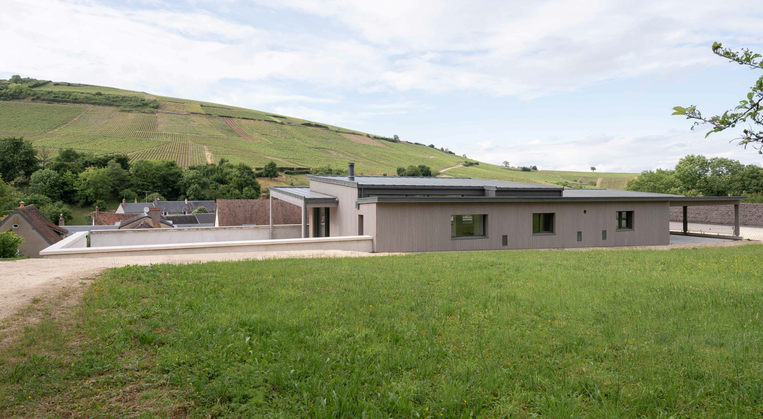 Le projet prend place au cœur du domaine de Sancerre, à Chavignol. Le propriétaire, producteur de vin, a confié à l’agence la conception et la construction de sa maison familiale, imaginée comme un lieu de vie à la fois intime et ouvert sur le paysage. Le site, à flanc de colline, offre une vue exceptionnelle sur les coteaux où s’étendent les vignes du client. Cette vue riche et apaisante a guidé, dès l’origine, la conception des espaces.