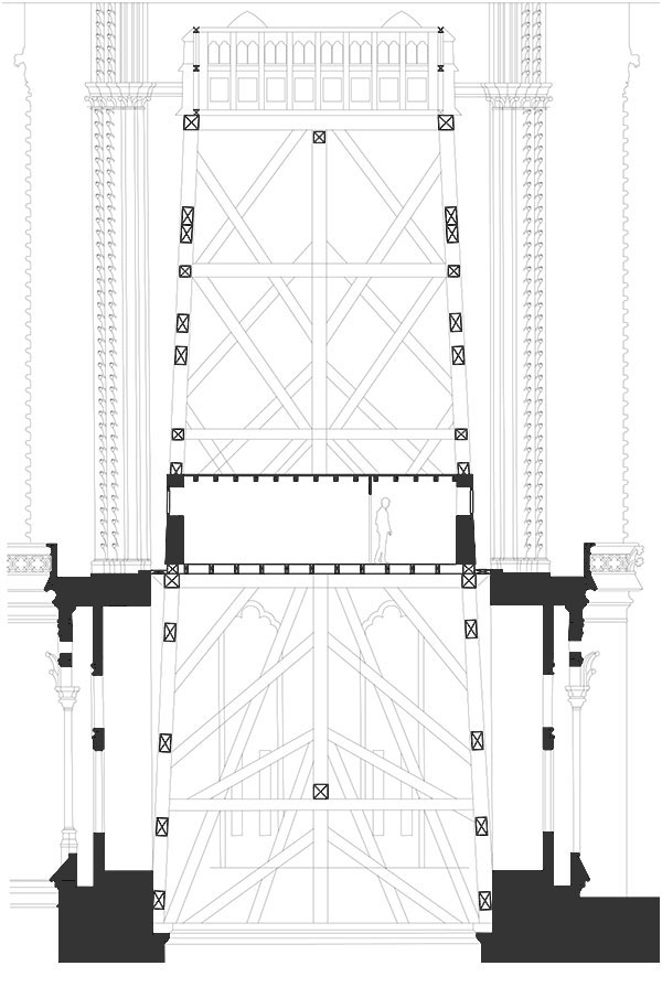 Le local de jour des agents de Notre-Dame se situe au niveau de la galerie des cloches de la tour nord, accessible uniquement par un escalier totalisant environ 200 marches exiguës.